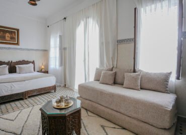 Les Suites Junior du Riad El Noujoum, situées au premier étage, incarnent le parfait équilibre entre l’élégance marocaine et le confort contemporain. Baignées de lumière naturelle